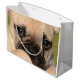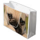 Augen eines niedlichen Welpen der französischen Große Geschenktüte