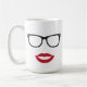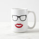 Diese moderne Tasse macht ein großes Geschenk für jemand mit einer Richtung des Spaßes. Sie kennzeichnet die Silhouette der Brillen und der roten Lippen. Modischer Entwurf, der einen Gesprächsstoff macht. Passen Sie ihn mit den Augen-Gläsern und der Schnurrbart-Tasse zusammen und machen Sie es ein großes Geschenk für einen Paare, Verlobung, Jahrestag oder des Valentines Tag. Er ist auch für einen Designer, einen Blogger, einen Sekretär oder einen Bürokaufmann groß.