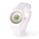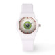 Hier ist ein Uhrendesign, das sicher aussieht...auf die eine oder andere Weise. Das Design des Uhrengesichts ist ein grünes Auge mit roten Stundenmarkierungen. Wenn Sie jetzt Ihre Uhr anschauen, blickt Ihre Uhr auf Sie zurück. Erhältlich in verschiedenen Stilen und Farben. Sie wählen.