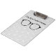 Brillenthema-Geschäftsklemmbretter mit Brille kopieren leicht gedruckt im Hintergrund und in dunklen Paaren und in einem Firmennamen, die Sie durch Ihren eigenen Handelsnamen oder beruflichen Namen in seinem Platz ersetzen können. Geschaffen für einen Augenarzt, ein Augen-Pflegezentrum oder einen Optometriker.