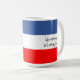 Sagen Sie es ganz klar und sagen Sie es auf Französisch. Du brauchst eine Minute. Im Moment übersetzt s'il vous plaît "einen Moment, bitte". Machen Sie eine Unabhängigkeitserklärung. Genießen Sie Ihren Moment der Ruhe und der Ruhe am Morgen, bevor Sie den Tag antreten. Die Wörter erscheinen in der Schrift, die auf eine endlose blaue, weiße und rote Streifen, im Stil der französischen Flagge auferlegt. Die Meldung erscheint auf beiden Seiten.