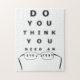 Augenuntersuchungsdiagramm mit allen Buchstaben verschwommen neben den Wörtern Auge und Test durch die Brille betrachtet