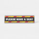 Dieses kühn und auffällig gestaltete Design enthält die Meldung "BITTE HABEN SIE EINEN SITZ". Dies könnte in einem Sitzbereich genutzt werden, um Besucher, Kunden oder Kunden darüber zu informieren, dass sie in Kürze unterstützt werden und in der Zwischenzeit einen Sitzplatz haben sollten.