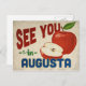 Eine bezaubernde Augusta Georgia Reisepostkarte mit einem schönen roten Apfel, zusammen mit lustigen Retro-Text, der sagt: "See you in Augusta"