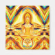 Bild einer Person, die mit digitalem Kunstdesign dahinter meditiert.