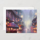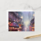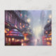 Die farbenfrohe Aurakore-Stil-KI hat eine fantasievolle Postkarte digitaler Kunst einer geschäftigen Straßenszene in der Abenddämmerung mit detaillierten Gebäude und einem hohen Wolkenkratzer in der Ferne erzeugt