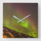 Aurora Borealis | Berge Fairbanks Alaska Quadratische Wanduhr