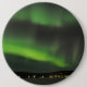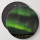 Knöpfen Sie mit grünen Strahlen von Aurora borealis (Nordlichter) im nächtlichen Himmel über einem gefrorenen See in Lappland.