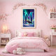Bringen Sie majestätische Winterpracht in Ihren Raum mit diesem Aurora-Buchstabe-M-Wandbild. Ein leuchtender Buchstabe M erhebt sich aus einem schneebedeckten Wald, beleuchtet von fließenden Bändern des Nordlichts in schimmernden Tönen von Türkis, Smaragd und Violett. Ein sanfter Elch steht im Vordergrund, sanft beleuchtet vom Aurora-Glanz, und fügt diesem magischen Winterbild eine friedliche Waldidylle hinzu.