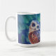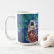 Eine kleine Eule passt die Aurora unter einen Vollmond auf.