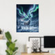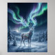 Ein friedliches Aurora-Hirsch steht in einer stillen arktischen Lichtung unter einem Himmel, der von Nordlichtern lebendig ist. Sein elegantes Geweih verwandelt sich in fließende Bänder aus smaragdgrünem, blauem und violettem Licht, das nahtlos mit dem leuchtenden Himmel verschmilzt. Umgeben von schneebedeckten Bäumen, fernen Bergen und reflektierendem Eis strahlt die Szene Frieden und spirituelle Schönheit aus. Dieses raffinierte Kunstwerk verbindet Wildtier-Realismus mit himmlischer Magie und ist daher ideal für Winterdekoration, Luxus-Inneneinrichtungen und naturinspirierte Wandkunst mit einer mystischen Note.