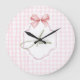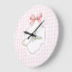 Aurora Personalisiert Pink Bow & Gingham Print Große Wanduhr
