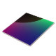 Diese phantastische Kachel weist ein digital gestaltetes Bild auf, das dem Halbmond eines dunklen Planeten ähnelt, umgeben von einem kosmischen Polarlicht aus Grün, Blau, lila und Rosa.