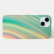 Dieses Gehäuse ist mit einem traumhaften Design aus Farbe und Licht gewebt. Es zeichnet sich durch einen zarten Verlauf von türkisfarbenem Grün, blassrosa und goldfarbenem aus, der sich sanft ändert, ähnlich wie der Orora borealis oder das Innere einer Perlmutt. Die fließenden Kurven und glitzernden Lichtstreifen geben ihm den Eindruck eines dynamischen Kunstwerks.