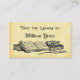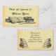 Eine Visitenkarte im Stil eines Buchschilds, die "From the Library of" in Deko-Buchstaben liest und unten Platz für Ihren Namen in alten englischen Buchstaben auf der Vorderseite mit alten Büchern und einem Schreibquill auf der Vorderseite und Vintagen Buchstaben auf der Rückseite, auf einem Hintergrund aus Imitaten. Ein einfacher Stapel Vintager Bücher im antiken Strohgeätzten Stil schmückt das Ende, alles in Schwarz und Weiß. Klicken Sie auf Anpassen, um die Schriftart, die Kartengröße, die Hintergrundfarben und vieles mehr zu ändern, um das Design für später retten.