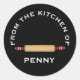 "From the Kitchen of" personalisierte Namensaufkleber. Minimalistisches Design mit schwarzem Hintergrund, rollendem Button und fett weißer Typografie. Alle Rechte vorbehalten © 2021 Alan & Marcia Socolik.