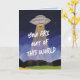 Angemalt UAP Raumschiff in einem hellen Strahl und Herz auf dunklem Nachthimmel-Hintergrund mit dem Satz "Du bist aus dieser Welt".