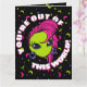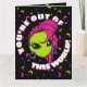 Dieses modische Außerirdische kommt auf die Erde für Mode, Party, Felsen und Rollin. Ein niedliches Cartoon-Design mit einem grün-gehäuften Alien-Mädchen ohne Mund, großen lila Ohrringen und einem noch größeren rosa Haar. Sie hat riesige Augen mit seltsamen Wimpern. Diese Valentinstag-Karte zeigt eine lustige Nachricht auf der Vorderseite: "You're Out Of This World!" (Sie können sie ändern, wenn Sie gewollt haben!). Und innen können Sie eine Nachricht an Ihre spezielle Person anpassen. 👽 Kunst von Jessica Amber. Für phantastischere Produkte Karo aus meinem Geschäft: Zazzle.com/JessicaAmberArtist 👽 Für benutzerdefinierte Bestellungen, schreiben Sie mir auf Zazzle