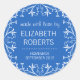 Schönes blau-weiß dekoratives Muster. Fügen Sie Ihren eigenen Namen und Text hinzu. Sie können die Wörter entweder einfach als "hausgemacht" verlassen oder sie ändern, um den hausgemachten Rasberry-Jam oder den Namen von dem zu lesen, was im Glas ist! Die blaue Hintergrundfarbe ist anpassbar. Machen Sie es in der Farbe Ihrer Wahl!