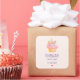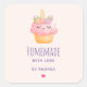 Hausgemacht mit Liebe Aufklebern mit einer Aquarellfarbe, gezeichnet von einem Kuchen mit rosa Vereisung, einem Einhornhorn und farbenfrohen Rose.
