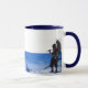 Weiß und pulverblau 11 oz. Combo-Tasse mit beidseitigem Bild einer Vintagen Abbildung von N. C. Wyeth von einem klassischen Roman von Daniel Defoe. Siehe dazu passende Süßigkeiten, Espressotasse, Kolben, Krug, Papiertüte, Kugelglas, Teekanne und Untersetzer. Sehen Sie sich die gesamte Tasse von Shipwreck im NAHRUNGSMITTEL/BEV an. | Abschnitt Geschirr.