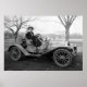 Foto der Frau, die als Miss R. Maycliffe identifiziert wurde, in riesigem Pelzmantel, Hut und schönes altes Auto, Anfang des 19. Jahrhunderts.
