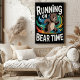 Diese dynamische Abbildung zeigt einen fröhlichen Bären, der mit Bewegung und Energie läuft. Der Text "Running on Bären Time" umgibt den Bären und schafft ein spielerisches und energisches Thema. Die farbenfrohen Wirbel und das lebendige Design vermitteln ein Gefühl von Abenteuer und Lebensfreude und vermitteln so eine Begeisterungsbotschaft und einen sorglosen Geist.
