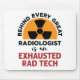 Dieses komische krasse Design ist perfekt für einen Radiologen, Radiologen oder einen Röntgeningenieur oder einen MRT-Operator. Das Kunstwerk weist ein Strahlungssymbol auf und sagt: "Hinter jedem großen Radiologen steckt eine erschöpfte krasse Technologie."