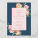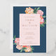 Diese elegante Hochzeitssuite besticht durch ein atemberaubendes, florales Aquarelldesign in sanften Farbtönen wie Beige, Hellgelb, Rosa und Orange. Das Set vor einem wunderschönen, mitteldunkelblauen Hintergrund. Mit klassischen und raffinierten Schriftart sind diese Einladungen perfekt für eine stilvolle romantische Hochzeitsfeier.