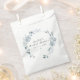 Dieses Brautparty-Gefallen-Tasche bietet elegante staubige Blumen und Weiß-Blumen und einen eleganten minimalistischen Schriftart. Diese Gunst-Tasche ist perfekt für jeden einfachen und klassischen Event.