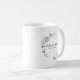 Diese Brautparty-Kaffee-Tasse mit eleganten, staubigen Blumen und weißen Blumen und einem eleganten, minimalistischen Schriftart. Es ist perfekt für jedes Brautparty