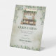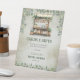 Schöner Wald und Salbei grünen Eukalyptus und Boutique Bauernmarkt "Karten und Geschenke" Plakatdesign. Rustikaler, altertümlicher Vordergrund kombiniert mit dem grünen Holzständer und dem umgebenden Eukalyptus erinnert an einen offenen italienischen oder landschaftlichen Marktplatz.