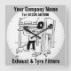 Promoten Sie Ihr Geschäft mit Auspuff- und Reifentafeln. Machen Sie es persönlich, indem Sie Ihren Firmennamen und Telefonnummer. Umfasst einen dunklen Hintergrund der Uhr.