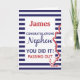 Diese klassische britische Marinekarte, die Paradeausstellungen ausgibt, ist ein guter Weg, um Ihrem Neffen zu seinem Erfolg zu gratulieren und die harte Ausbildung, die sie bisher in ihrer militärischen Karriere erlebt haben, zu beglückwünschen. Navy blaue und weiße Streifen mit einem Anker des Schiffes und Formulierung mit dem Namen des Marinemedikators enthalten.