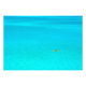 Foto eines Mannes, der in einem Kanuboot in der hellblauen Lagune der tropischen Insel Bora Bora bei Tahiti im Pazifik-Archipel Französisch-Polynesien paddelt.