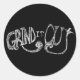 Das Bild enthält den Text 'Grind It Out' in einem kreideartigen Schriftart. Die Typografie hat ein fließendes, lockiges Design.