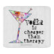 WODKA IST BILLIGER ALS humorvolles Cocktailzitat DES THERAPIE-COCKTAIL-SPASSES A von der Martini-Diva, die ein buntes Martini-Glas kennzeichnet, das mit einem Regenbogen der Blasen mit einem Cocktail-Auswahl-Akzent gefüllt wird.