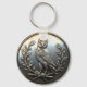 Schale Schlüsselanhänger Messing aussehen. Digitales Bild eines antiken Messingknopfs mit Eule auf Zweig. Einzigartiges Geschenk für Vogelbeobachter oder Umweltschützer