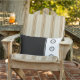 Dieses Kopfkissen im Freien wird in schwarzer Farbe mit einem weißen Akzent-Panel mit Imitat-Knöpfen gezeigt. Passen Sie dieses Objekt an oder kaufen Sie, wie es ist. Bild