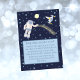 Bringen Sie ein Buch anstelle einer Karte mit, und diese niedliche Karte hilft. Es hat einen dunkelblauen Hintergrund mit blauen Mitternachtssternen, einem kleinen Raumfahrer, Vollgelben Mond, Raumschiff und passt zur Einladung der Babydusche. Spacemans Banner hat "Bring ein Buch!"