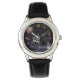 Uhr, Klassische Damenuhr mit schwarzen Lederarmband