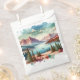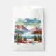 Hübsche Aquarelltaschen für die Gastgeschenk Hochzeit. Die Farben sind blau, grün und braun. Fügen Sie die Namen der Braut und des Bräutigams und das Hochzeitstag in den personalisierenden Bereich ein.