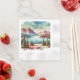Hübsche Aquarell Bergwelt Hochzeit personalisierte Papierservietten. Die Farben sind blau, grün und braun. Fügen Sie die Namen der Braut und des Bräutigams und das Hochzeitstag in den personalisierenden Bereich ein.