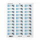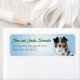Blue Merle Aussie vor blauem und weißem Hintergrund. Personalisieren Sie mit Ihrer Adresse, gut für mittlere bis lange Adressen. Illustriert und entworfen von der weltbekannten Künstlerin @Jacqueline Schneider