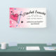 Ein Garnherz mit Häkelhaken und Imitate Glitzern auf diesem Kunsthandwerk Ausstellungsstand Banner für eine Wand oder Tisch, personalisiert mit Ihrem Text, Schriftart, und Farbschema.