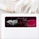 Ein Austausch von Ringen in Schwarzweiß-Fotografie mit dunkelrotem Hintergrund. In einer Ecke werden atemberaubende Platin-Hochzeitsbands hervorgehoben, wobei das Wort "Verlobt" als eingebetteter Text um die Bands herum eingebettet ist