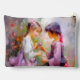 Ein KI-Gemälde von zwei Mädchen in einem Blumengarten. Ideal für Kinderzimmer.