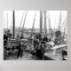 Es gibt zwei Arten von Männern in diesem Foto: Männer, die arbeiten, und Männer, die herumlachen und versuchen, wichtig auszusehen. Es gibt einen Jungen in einer Art Uniform..und Austern! Austern! Austern!