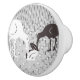 Das runde Schubfach zeigt eine monochrome graue Austernfänger-Silhouette.