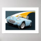 Poster-Darstellung der Austin Healey 'Frog eye' Sprite. Von mir entworfen und illustriert mit einem schweren weißen Rahmen für die Rahmung.